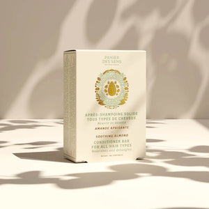 The Soothing Almond Solid Conditioner Bar 75g by Panier des Sens offers a gentle, sustainable approach to hair nourishment. Formulated with sweet almond oil, botanical butter, and natural-origin ingredients, this rich solid conditioner detangles, softens and smooths the hair without weighing it down.