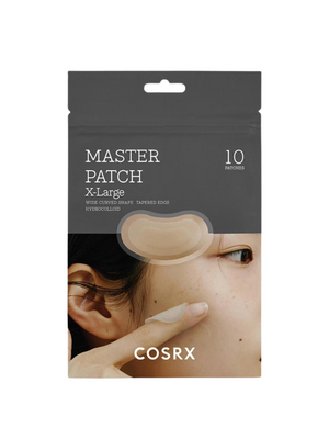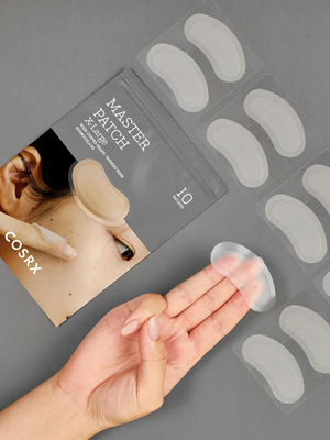 Acne patches made of hydrocolloid absorb pus from pimples and prevent them from infection caused by external bacteria and other factors. These patches have a wide curved form with a tapered edge and are extra-large in size.